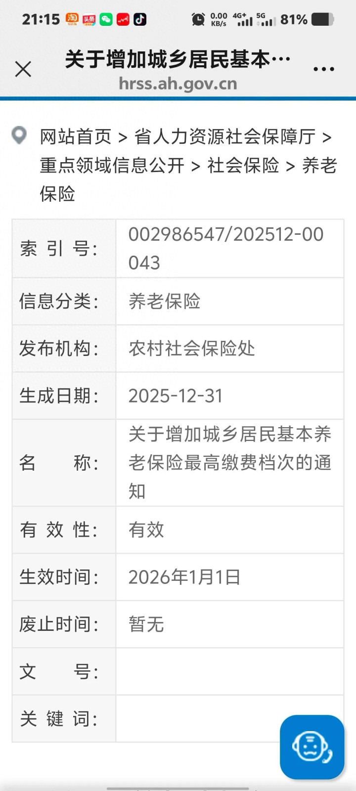 2025年12月31日,城乡居民养老保险迎来重磅调整通知,从2026年1月1日起正式实施,对咱们普通老百姓来说可是实实在在的好消息!